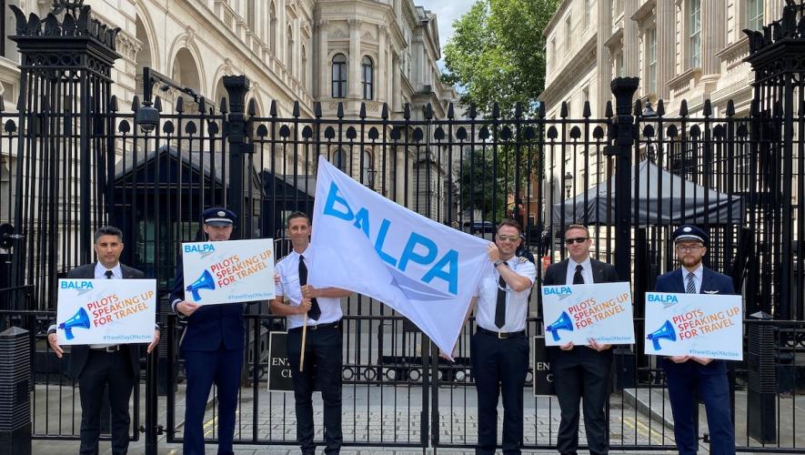 Airline and airport staff joined forces with their managements in a "travel day of action" protest, demanding changes to UK government Covid travel rules.