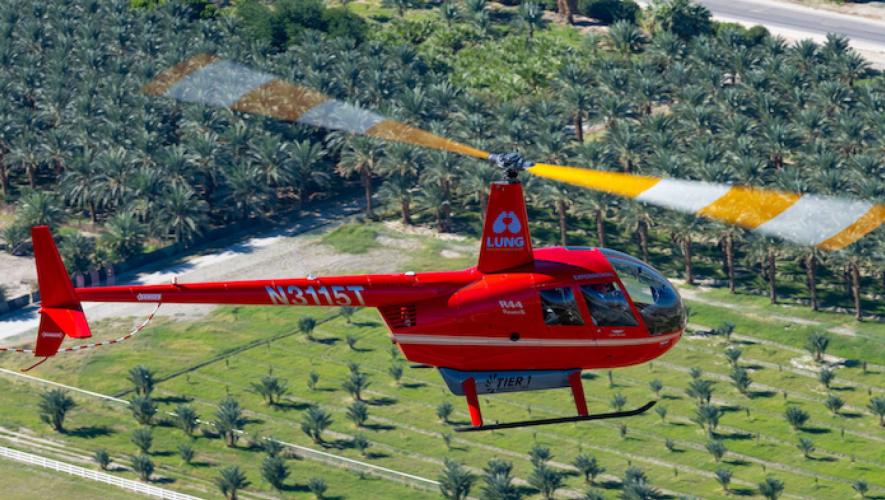 An Enstrom 280FX is pictured in flight at HAI's Heli-Expo 2023